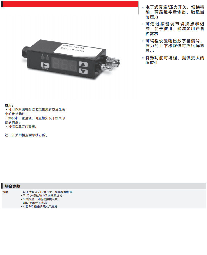 您當(dāng)前的位置:首頁(yè) » 供應(yīng)產(chǎn)品 » SWD-V00-PA,SWD-P10-PA,camozzi壓力開關(guān)