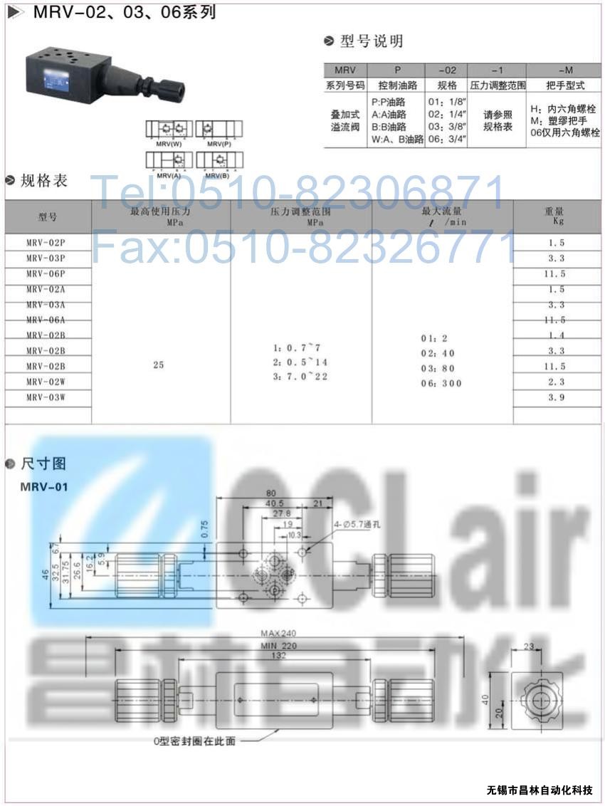 MRV-03A,MRV-06A,MRV-02B,MRV-03B,疊加式溢流閥