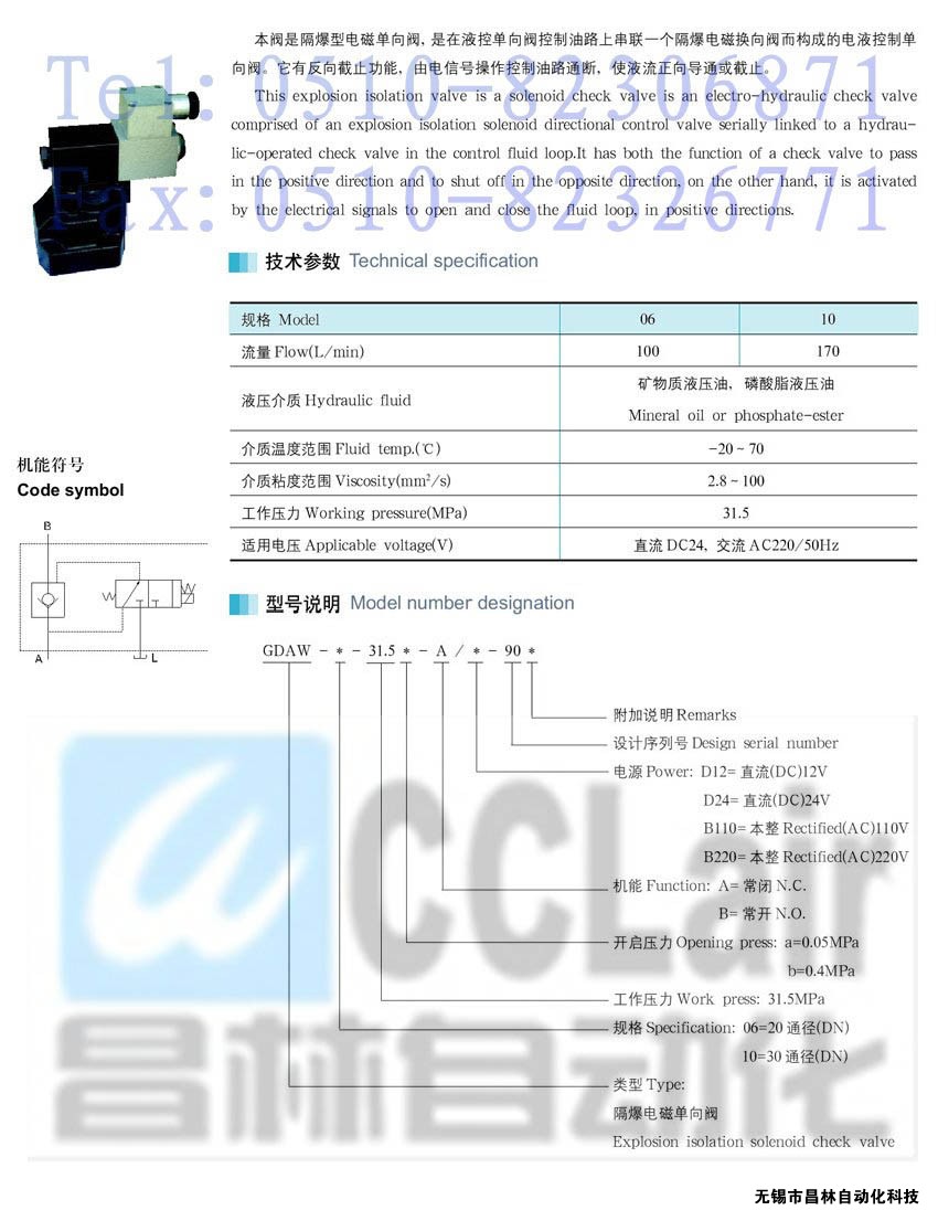 的詳細(xì)介紹GDAW-10-31.5a-B/B220-90,隔爆電磁單向閥,昌林隔爆電磁單向閥,隔爆電磁單向閥生產(chǎn)廠家,隔爆電磁單向閥價格,