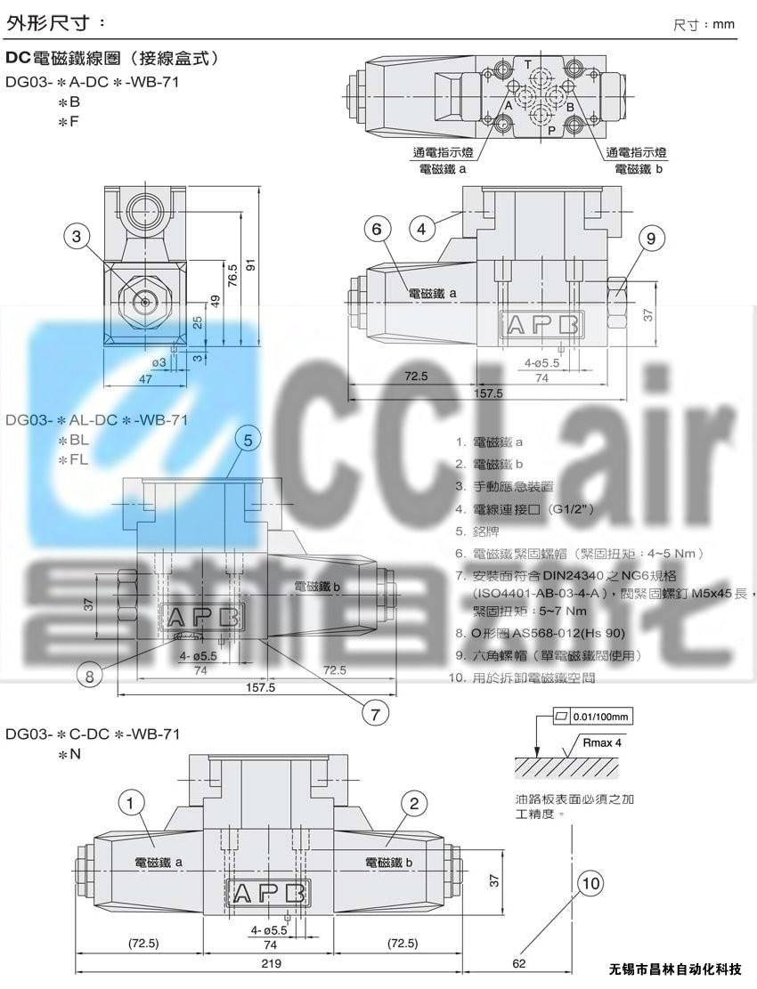 DG03-5AL,DG03-6AL,DG03-7AL,DG03-8AL,DG03-11AL,DG03-22AL,DG03-31AL,濕式電磁鐵操作換向閥
