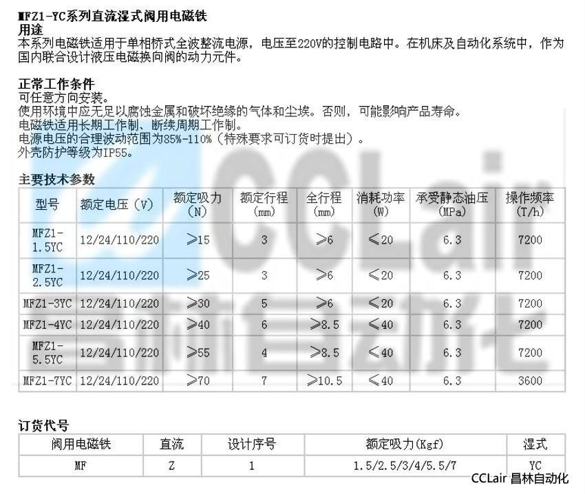詳細(xì)信息 MFZ1-1.5YC,MFZ1-2.5YC,MFZ1-3YC,直流濕式閥用電磁鐵,昌林直流濕式閥用電磁鐵,直流濕式閥用電磁鐵生產(chǎn)廠家,直流濕式閥用電磁鐵價(jià)格,