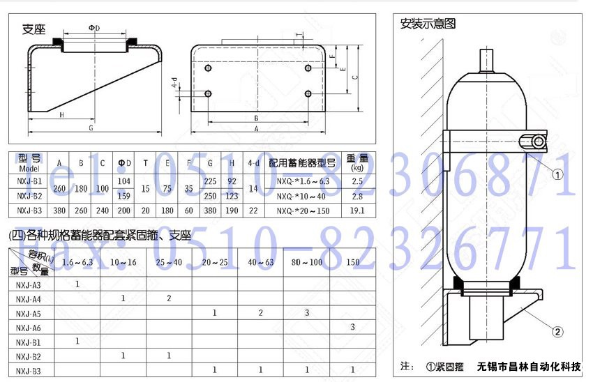 NXJ-A1,NXJ-A2,NXJ-A3,NXJ-A4,NXJ-A5,NXJ-A6,NXJ-B1,NXJ-B2,NXJ-B3,蓄能器支座及緊固箍