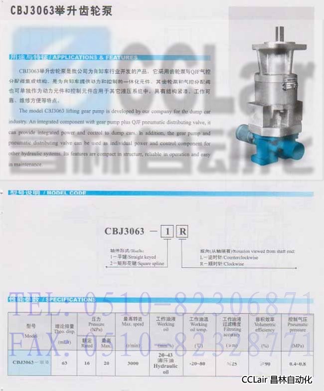 詳細信息 CBJ3063-1R,CBJ3063-1L,CBJ3063-2L,CBJ3063-2R,舉升齒輪泵