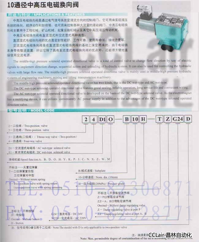 24E1O-B10H,24E1O-B10H-Z,24E1O-B10H-ZZ,中高壓電磁換向閥,