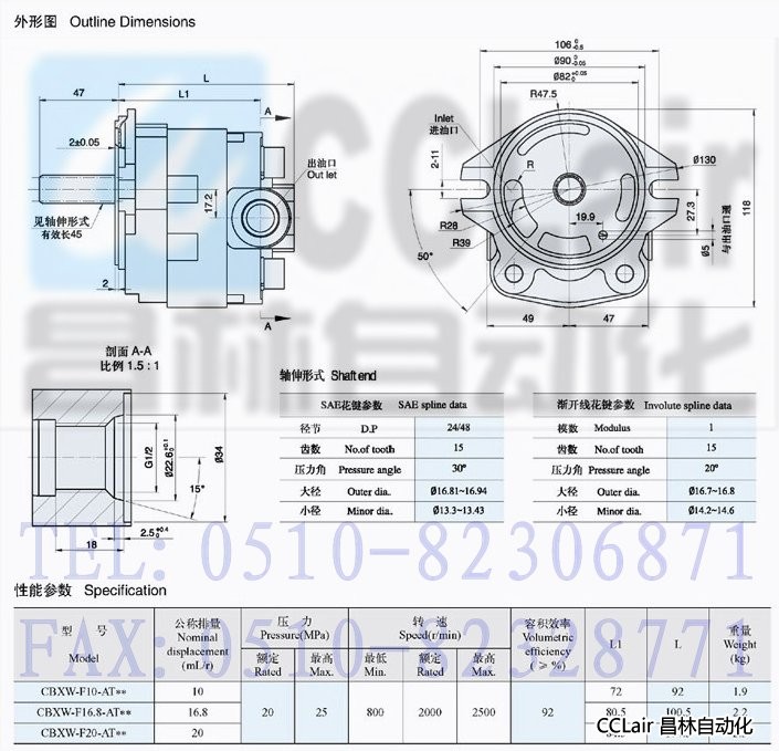 ?、?軸伸形式 Shaft end X: 漸開線花鍵 Involute spline Φ: SAE花鍵 SAE spline