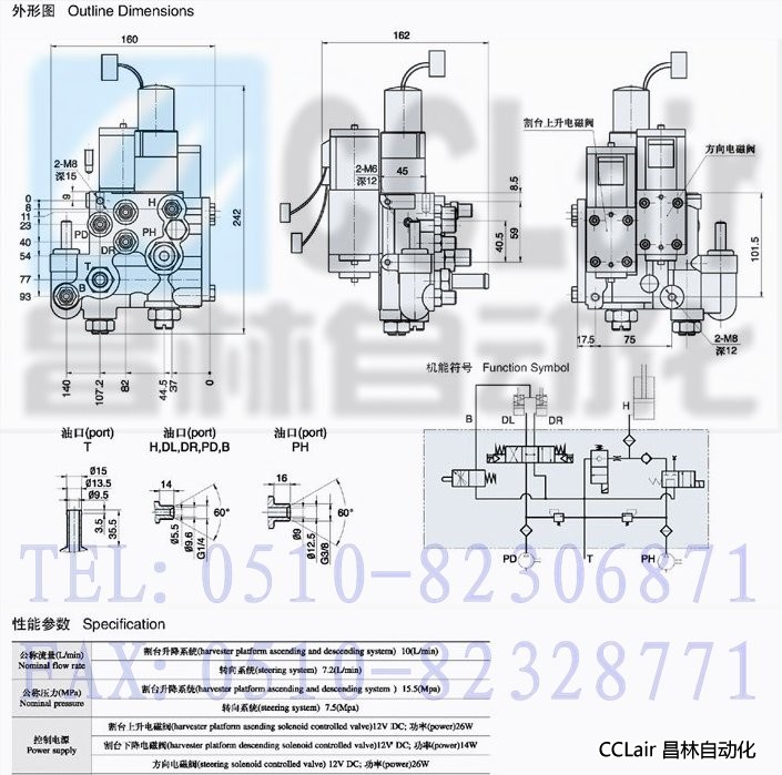 污染物進(jìn)入電磁控制閥和油缸。此閥廣泛用于半喂入水稻收割機(jī)或其它履帶式收割機(jī)和小型工程機(jī)械的液壓控制系統(tǒng)。