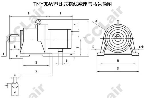 TMYJBW型臥式擺線減速氣馬達(dá)安裝及外形尺寸表