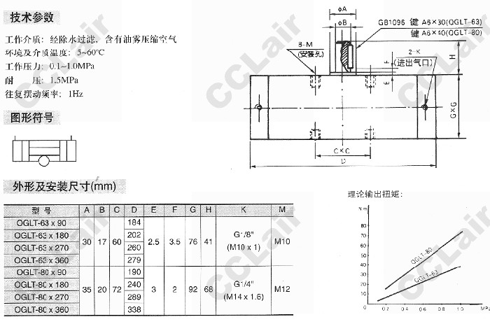 詳細(xì)信息 QGLT-63,QGLT-80,QGLT-63×360,QGLT-80×90,齒輪齒條式擺動氣缸