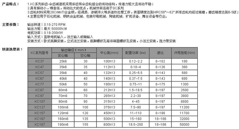 KC37,KC47,KC57,KC67,KC77,KC87,KC97,KC107,KCW37,KCM37,KCL37,KCLX37,KCN37,斜齒-傘齒減速機