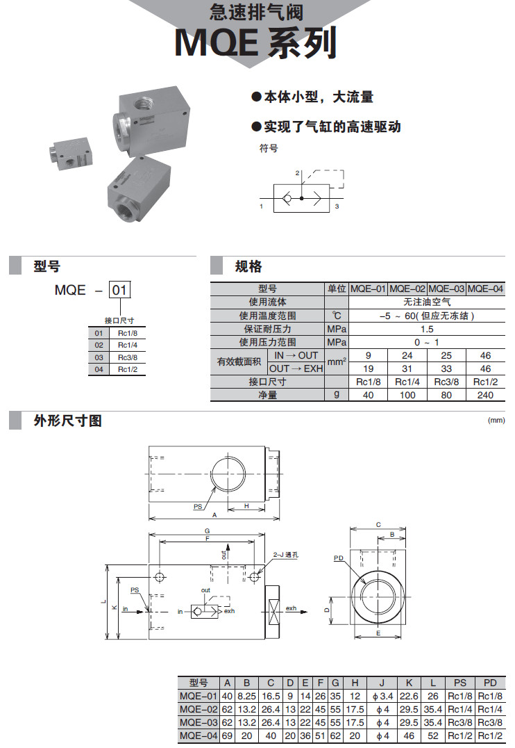 詳細(xì)信息 MQE-01,MQE-02,MQE-03,MQE-04,急速排氣閥