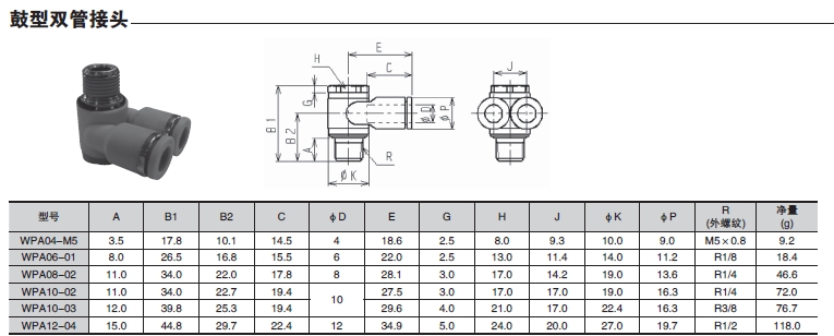 WPA04-M5,WPA06-01,WPA08-02,WPA10-02,WPA10-03,WPA12-04,鼓型雙管接頭