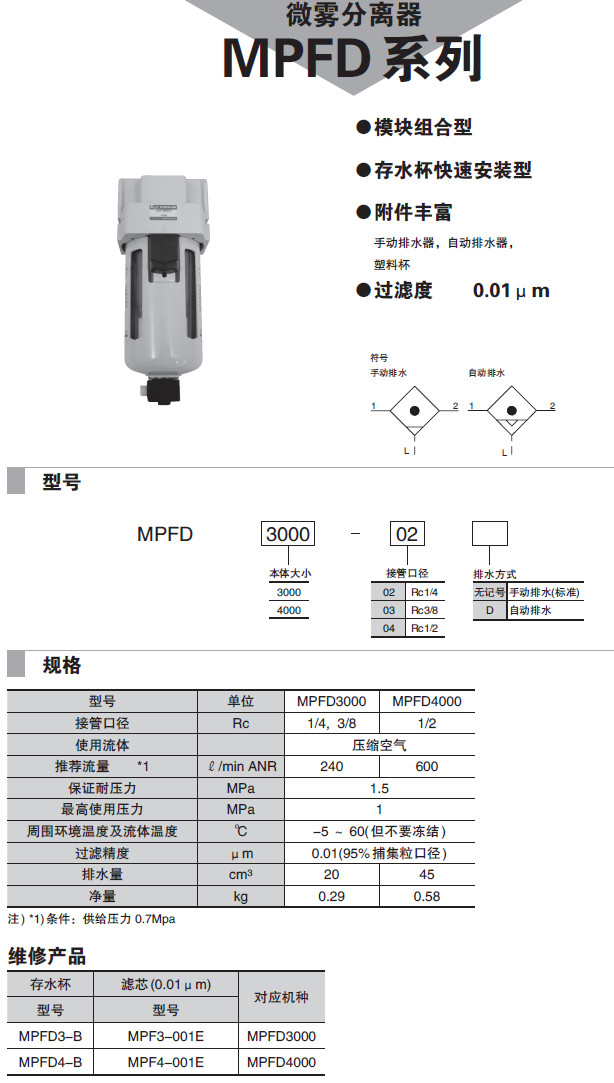 詳細信息 MPFD3000-02,MPFD3000-03,MPFD3000-04,MPFD4000-02,MPFD4000-03,MPFD4000-04,微霧分離器