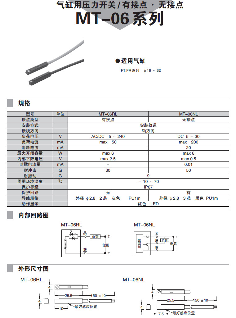 MT-06RL,MT-06NL,氣缸用壓力開關