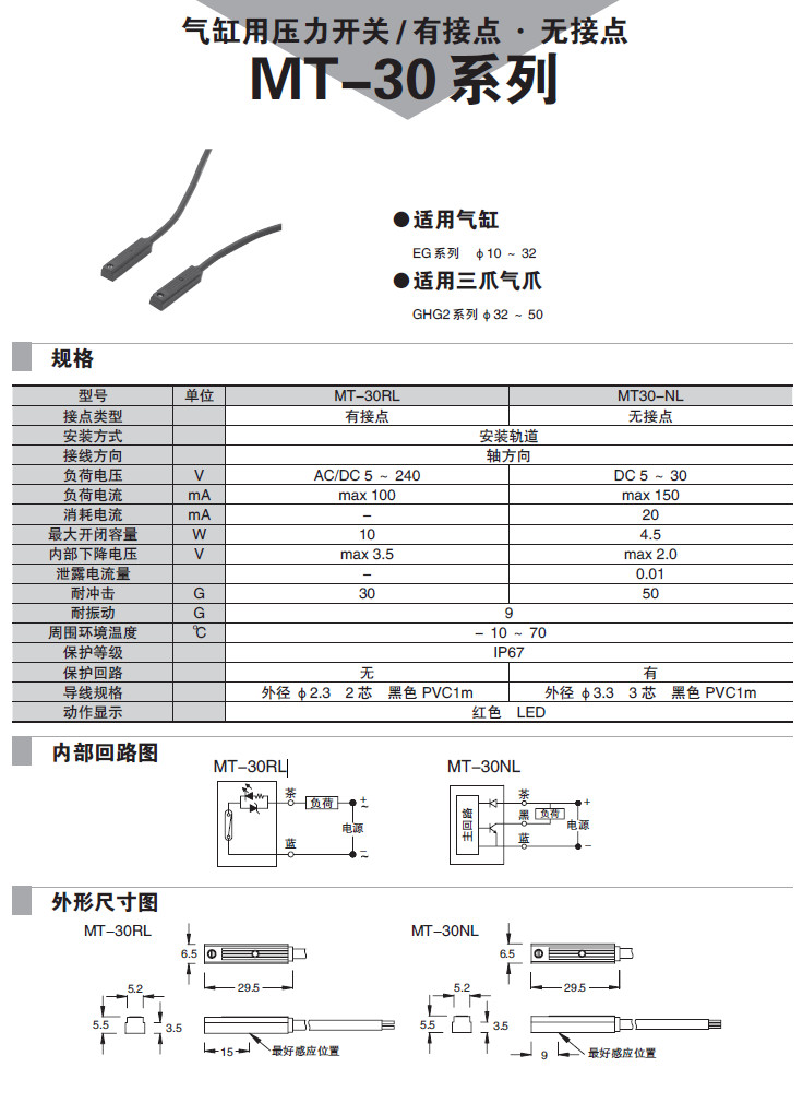 您當(dāng)前的位置:首頁 » 產(chǎn)品&解決方案 » MT-30RL,MT30-NL,氣缸用壓力開關(guān)