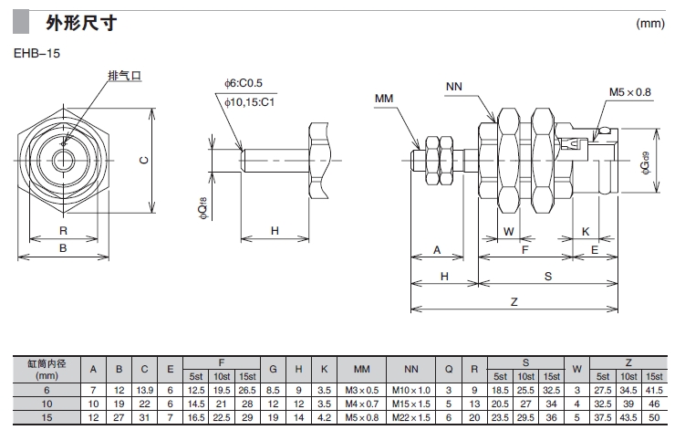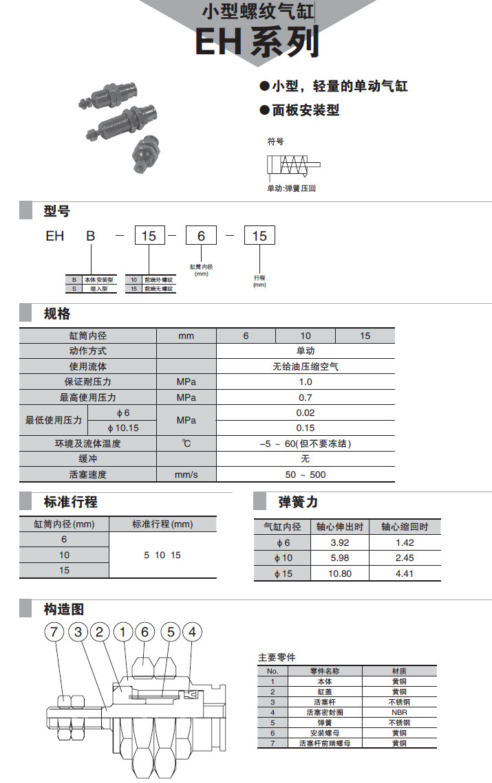 EHB-6-5,EHB-6-10,EHB-10-10,EHB-15-5,EHS-6-10,EHS-10-15,EHS-15-10,小型螺紋氣缸