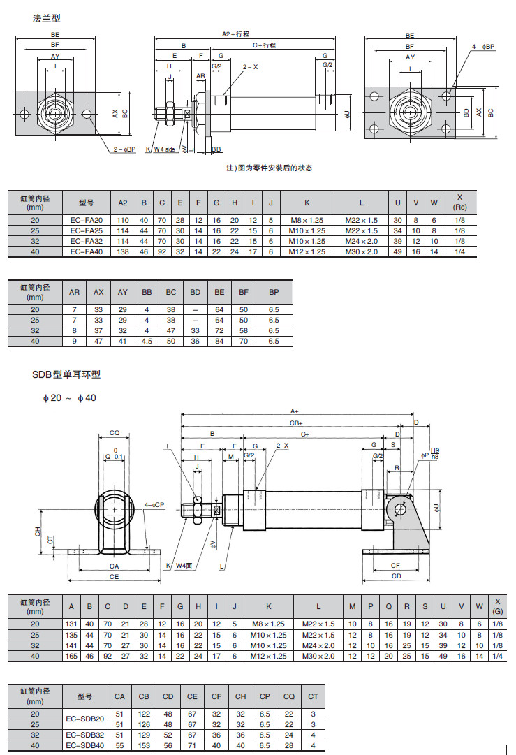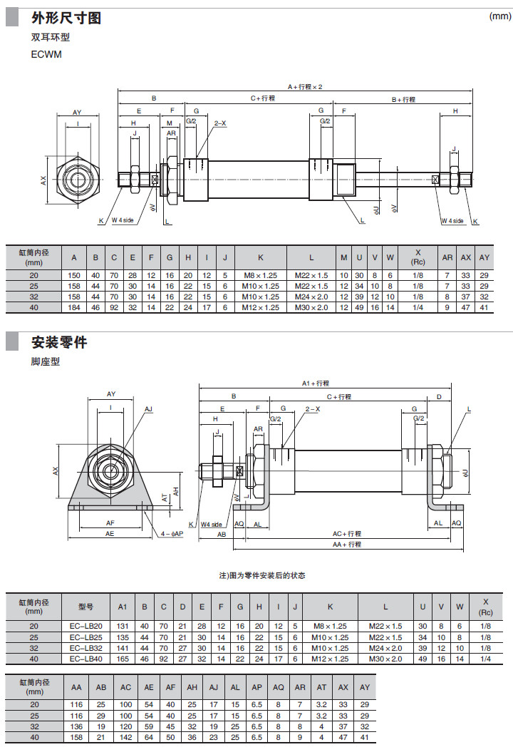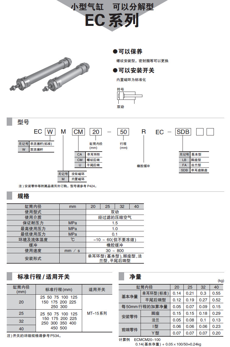 ECWMCM40-25,ECWMCM40-50,ECWMCM40-75,ECWMCM40-100,ECWMCM40-125,ECWMCM40-150, 小型氣缸