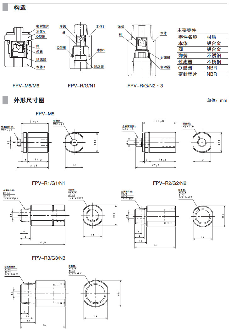 FPV-M5,FPV-M6,FPV-R1,FPV-G1,FPV-N1,FPV-R2,FPV-G2,FPV-N2,FPV-R3,FPV-G3,FPV-N3,防止逆止閥