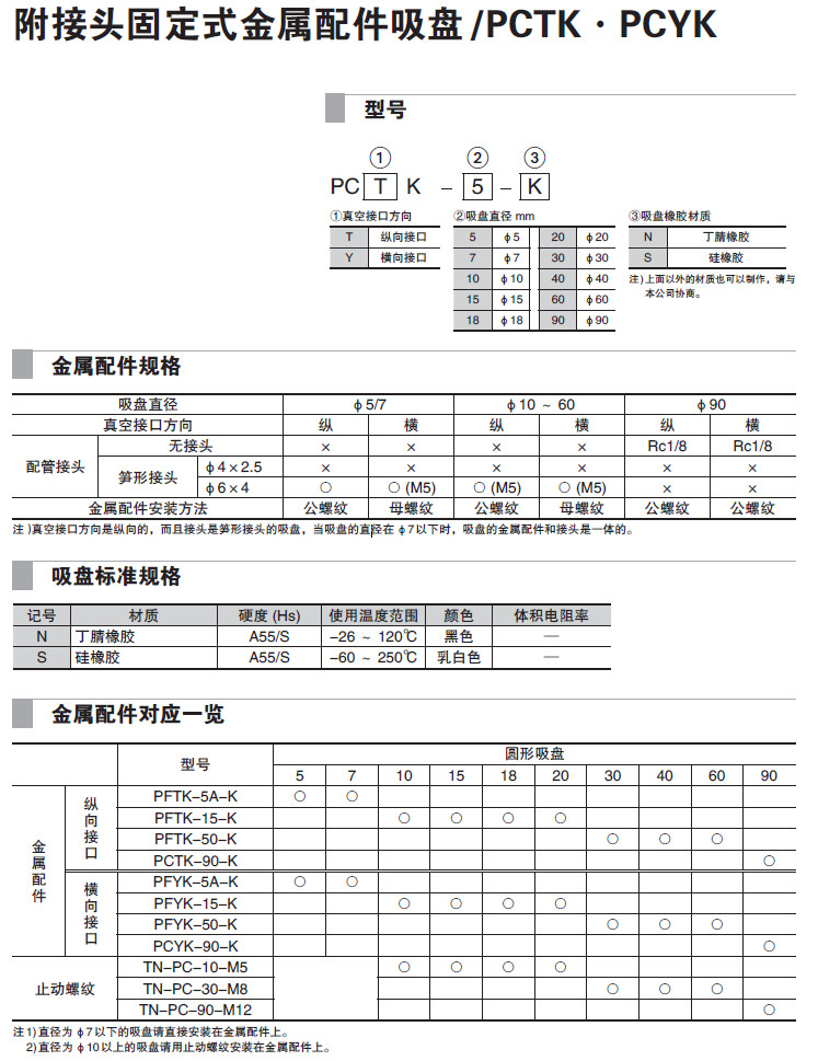 PCTK-5,PCTK-7,PCTK-10,PCTK-15,PCTK-18,PCYK-20,PCYK-30,PCYK-40,吸盤