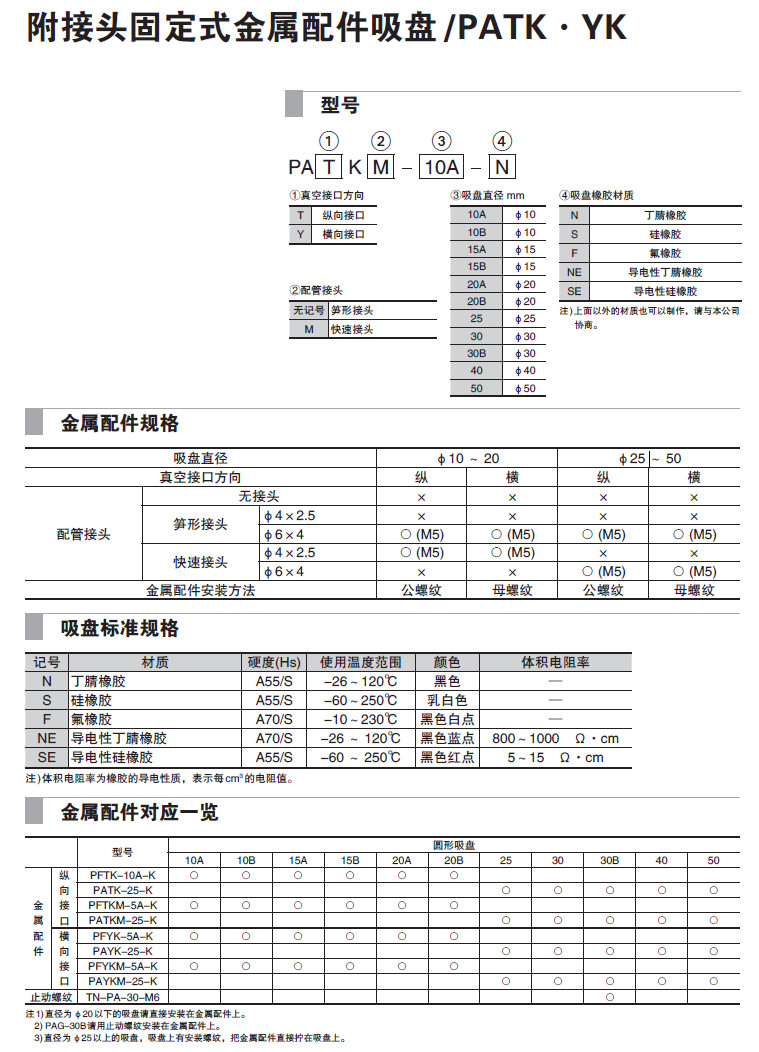 PFTK-10A,PFTK-10B,PFYK-20A,PFYK-20B,PFTKM-15A,PFTKM-15B,PFYKM-25,PFYKM-30,吸盤