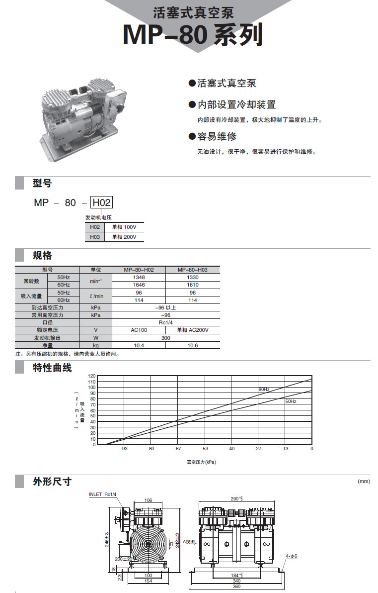 MP-80-H02,MP-80-H03,活塞式真空泵
