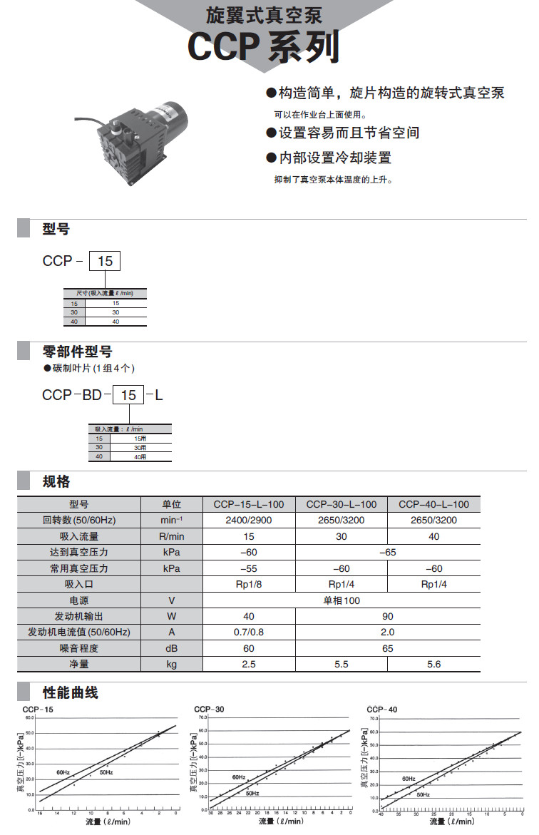 CCP-15-L-100,CCP-30-L-100,CCP-40-L-100,旋翼式真空泵
