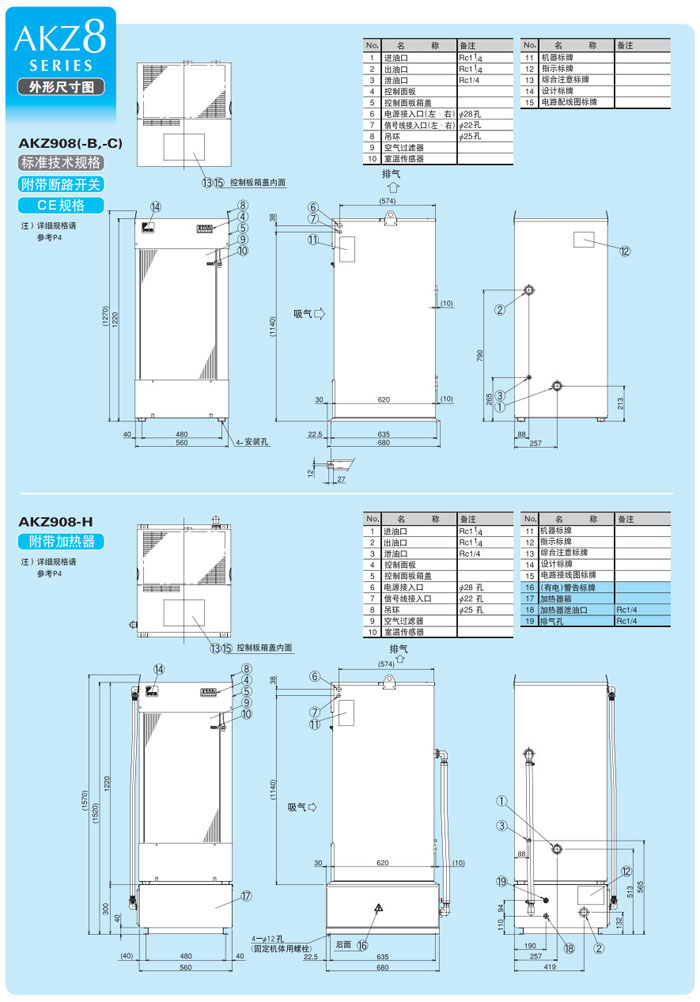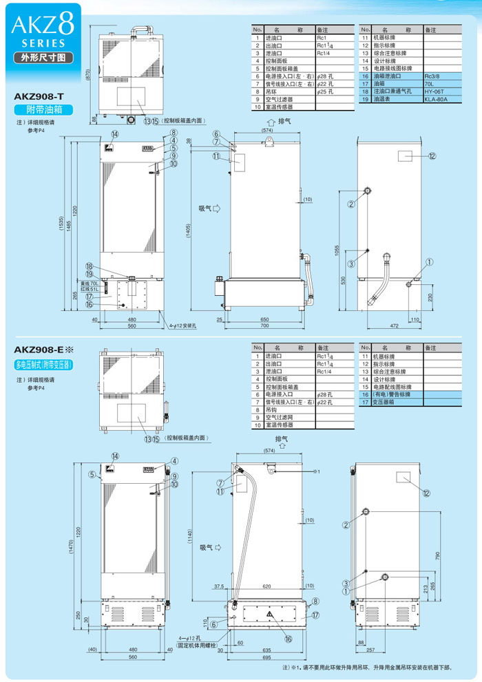 詳細信息 AKZ568,AKZ908,AKZ568-B,AKZ908-B,AKZ568-C,AKZ908-C,AKZ568-H,DAIKIN變頻油冷卻機
