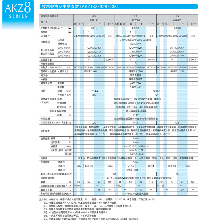 AKZ148,AKZ328,AKZ438,AKZ148-B,AKZ328-B,AKZ438-B,AKZ148-C,DAIKIN變頻油冷卻機