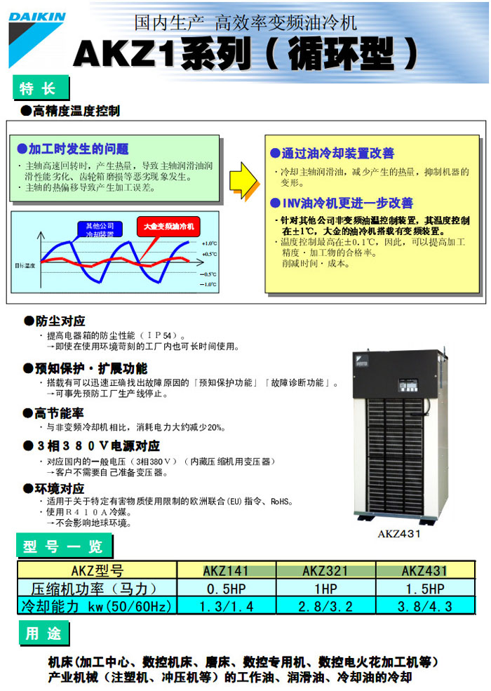 AKZ141,AKZ321,AKZ431,DAIKIN變頻油冷卻機