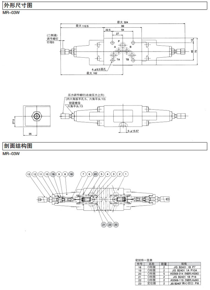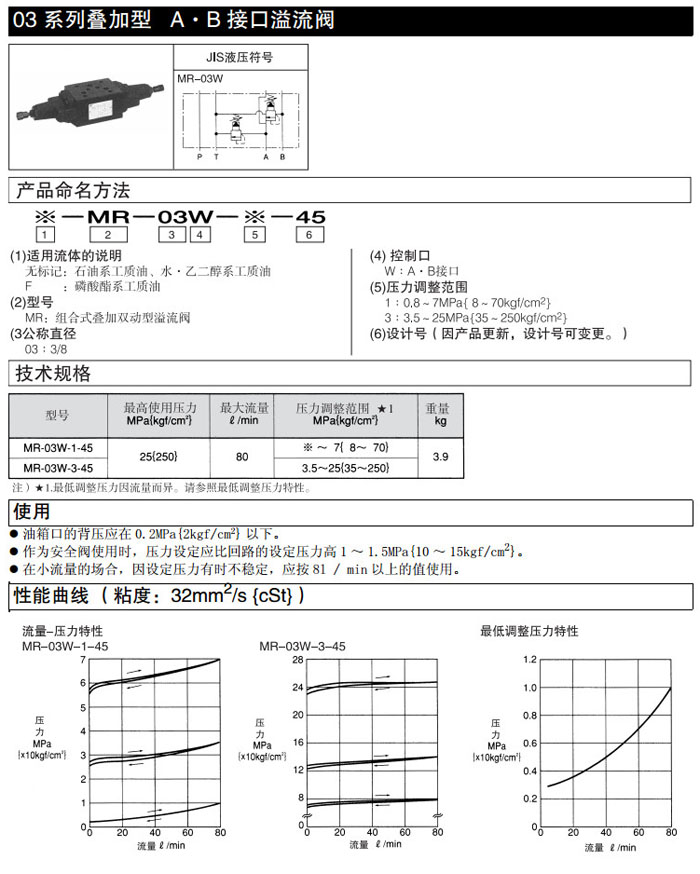 詳細信息 MR-03W-1-45,MR-03W-3-45,DAIKIN疊加型溢流閥
