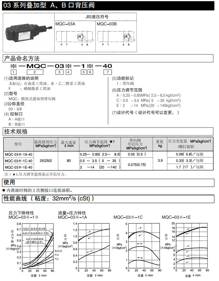 詳細(xì)信息 MQC-03A-1A-40,MQC-03A-1C-40,MQC-03A-1E-40,MQC-03B-1A-40,MQC-03B-1C-40,MQC-03B-1E-40,DAIKIN疊加型背壓閥