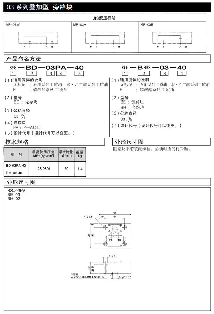 詳細(xì)信息 BD-03PA-40,BE-03-40,BH-03-40,DAIKIN疊加型旁路塊