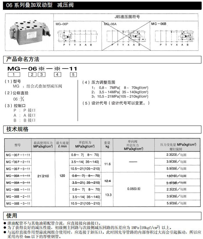 MG-06P,MG-06A,MG-06B,MG-06P-1-11,MG-06P-2-11,MG-06A-3-11,DAIKIN疊加雙動型減壓閥