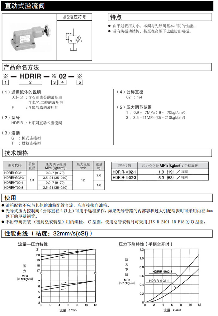HDRIR-G02-1,HDRIR-G02-3,HDRIR-T02-1,HDRIR-T02-3,DAIKIN直動式溢流閥