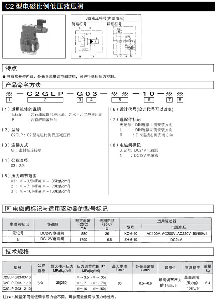 C2GLP-G03-03-10,C2GLP-G03-2-10,C2GLP-G03-3-10,DAIKIN電磁比例低壓液壓閥