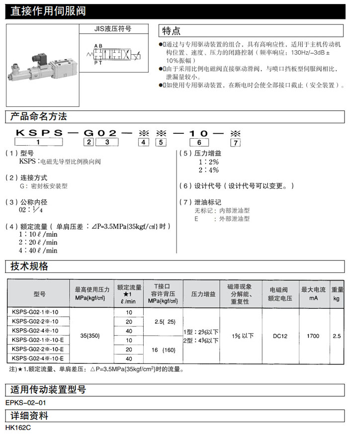 詳細(xì)信息 KSPS-G02,KSPS-G02-11-10,KSPS-G02-11-10-E,KSPS-G02-12-10,DAIKIN直接作用伺服閥