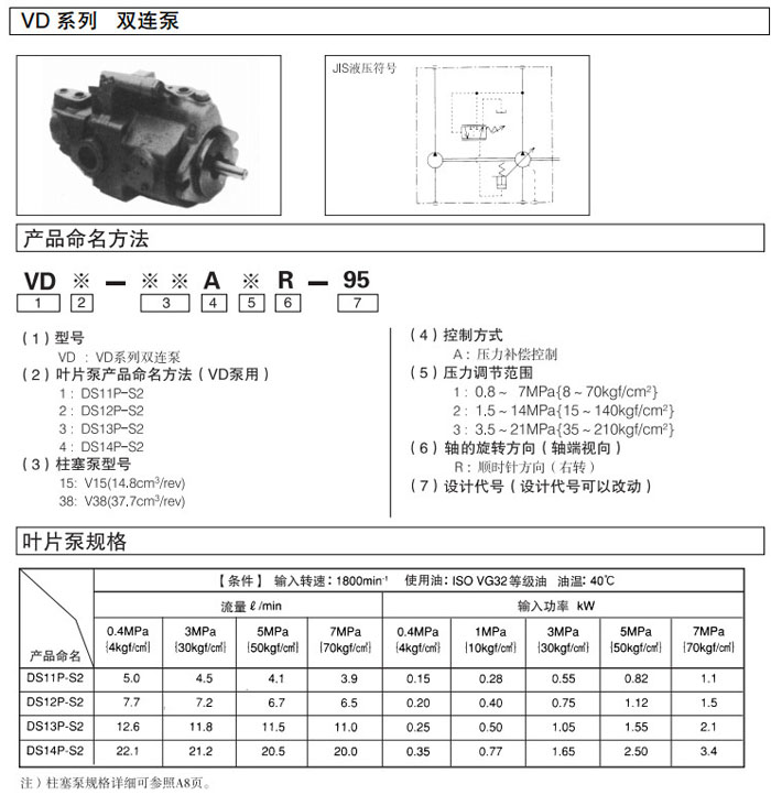 VD1-15A,VD2-15A,VD3-15A,VD1-38A,VD2-38A,VD3-38A,VD4-38A,VD4-15A,VD1-15A1R-95,DAIKIN雙聯(lián)柱塞泵