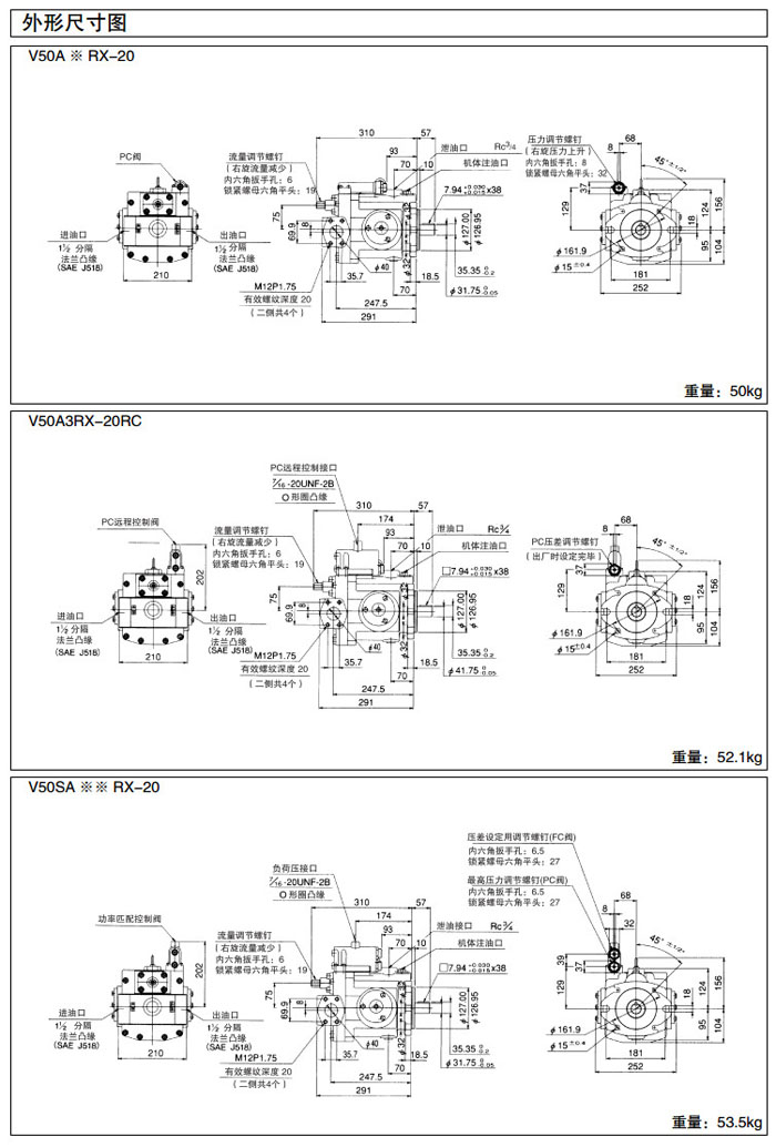 V50A,V50SA,V50SAJS,V50A1RX-20,V50SAJS-ARX-20,V50SA1ARX-20,V50A3RX-20RC,DAIKIN柱塞泵