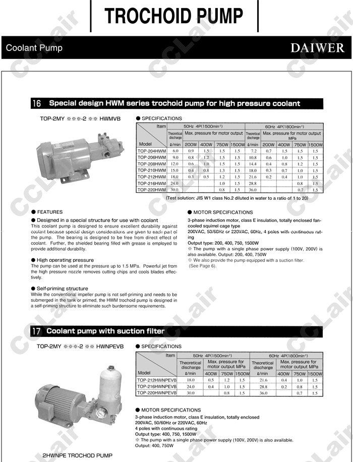 詳細信息 TOP-212HWNPEVB,TOP-216HWNPEVB,TOP-220HWNPEVB,DAIWER冷卻劑泵