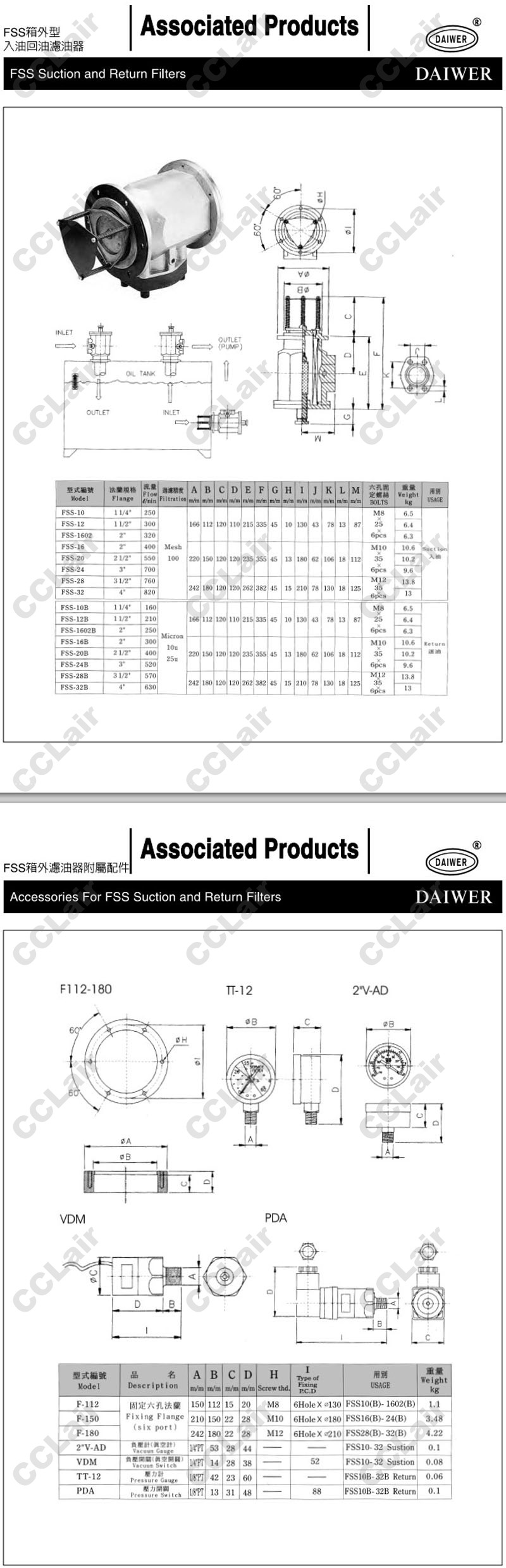 FSS-10,FSS-12,FSS-16,FSS-1602,FSS-20,FSS-24,FSS-28,FSS-32,FSS-32B,DAIWER箱外型入油回油濾油器