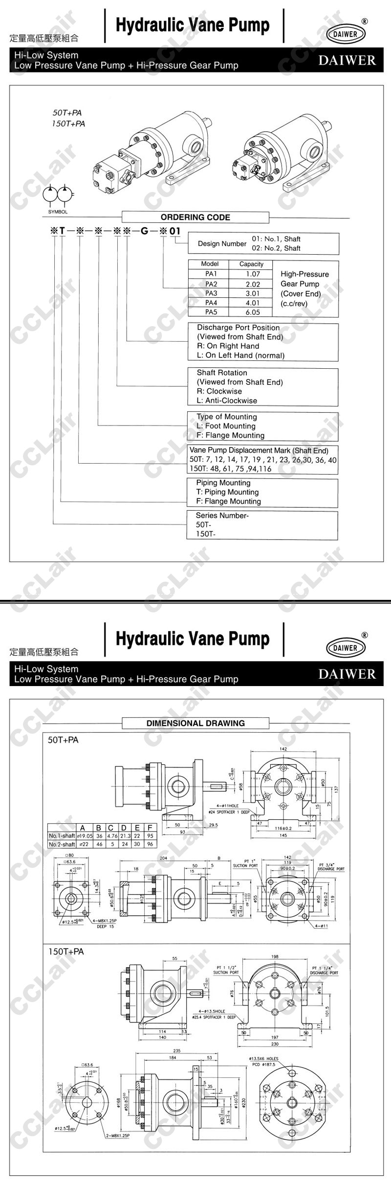 50T-07,50T-12,50T-14,50T-17,50T-19,50T-21,50T-23,50T-26,50T-30,50T-36,50T-40,DAIWER定量高低壓泵組合