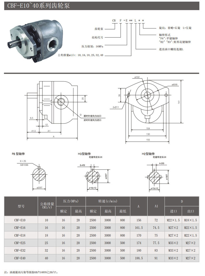 CBF-E10,CBF-E16,CBF-E18,CBF-E25,CBF-E32,CBF-E40,CBF-E10LP8,CBF-E10LP8L,齒輪泵
