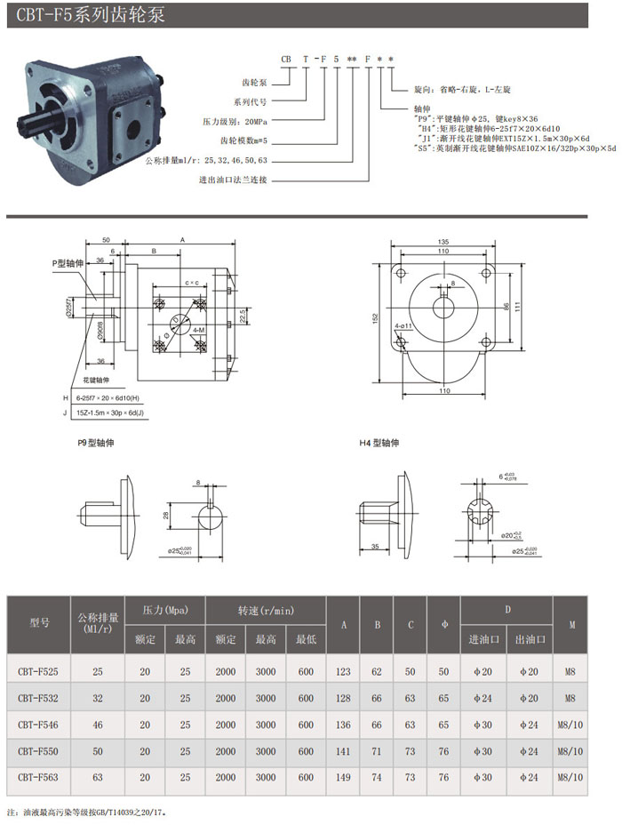 CBT-F525,CBT-F532,CBT-F546,CBT-F550,CBT-F563,CBT-F525P9,CBT-F532P9,齒輪泵