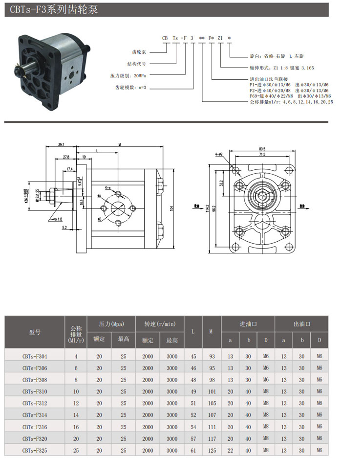 CBTs-F304,CBTs-F306,CBTs-F308,CBTs-F310,CBTs-F312,CBTs-F314,CBTs-F316,CBTs-F320,CBTs-F325,齒輪泵