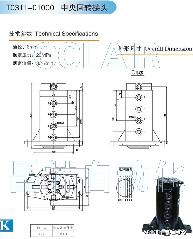 詳細(xì)信息 T0311-01000,中央回轉(zhuǎn)接頭