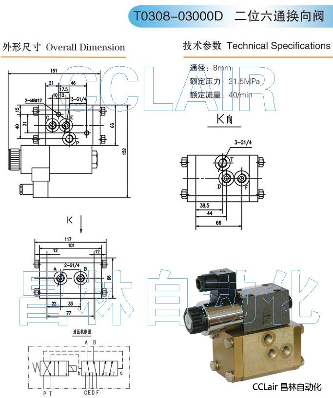 詳細(xì)信息 T0308-03000D,二位六通換向閥
