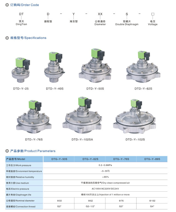 DTD-Y-25,DTD-Y-40S,DTD-Y-50S,淹沒(méi)式脈沖閥