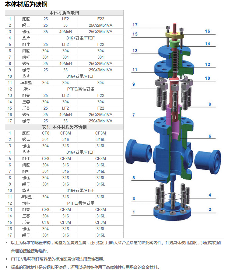 閥芯 | 特性 | 直線、等百分比、快開 | 填料 | “V”型PTFE、 柔性石墨、波紋管 |