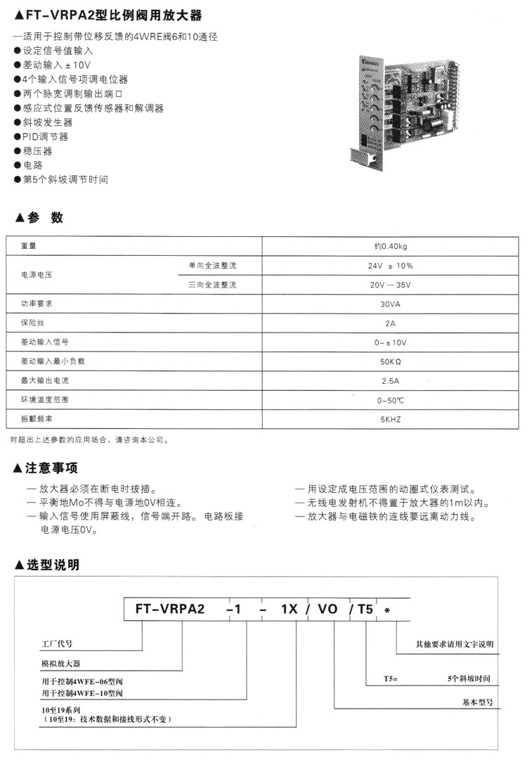 FT-VRPA2-1-1X/VO/T5,比例閥用放大器