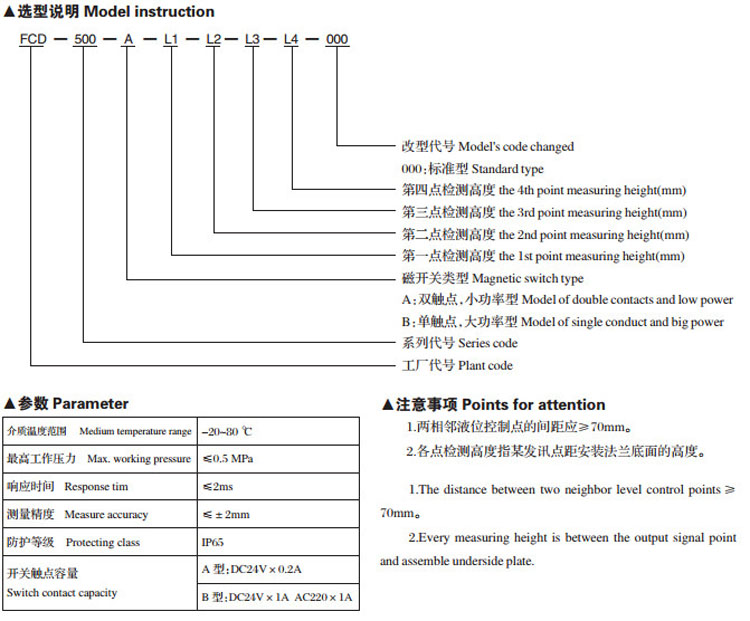 詳細(xì)信息 FCD-500,浮球式液位繼電器