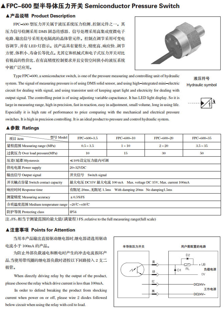 詳細(xì)信息 FPC-600,半導(dǎo)體壓力開關(guān)